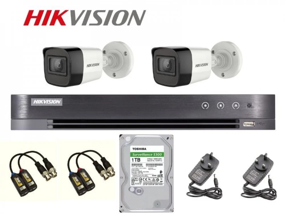 نظام حماية من 2 كاميرات مراقبة من هيكفيجن مع جهاز تسجيل بأربع قنوات 4k - الكل في واحد مع تسجيل فيديو رقمي بدقة 8 ميجابكسل